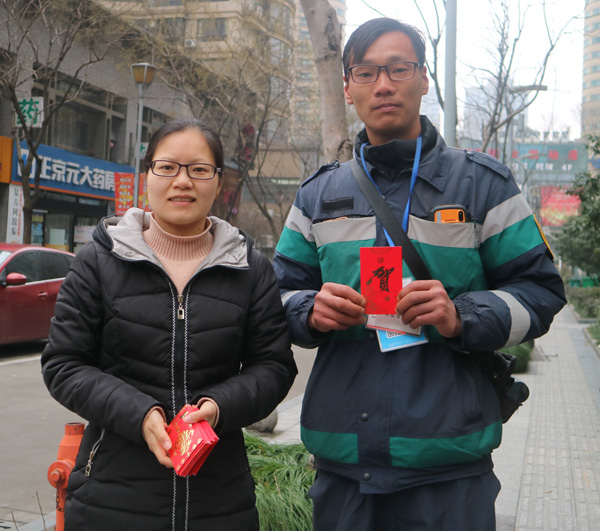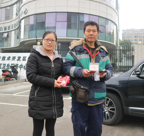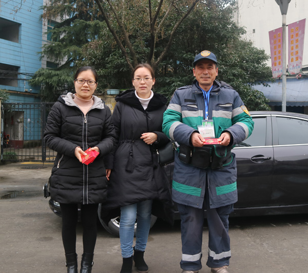 開年第一天上班,公司領(lǐng)導(dǎo)給奮戰(zhàn)在一線的停車收費員發(fā)開門紅包