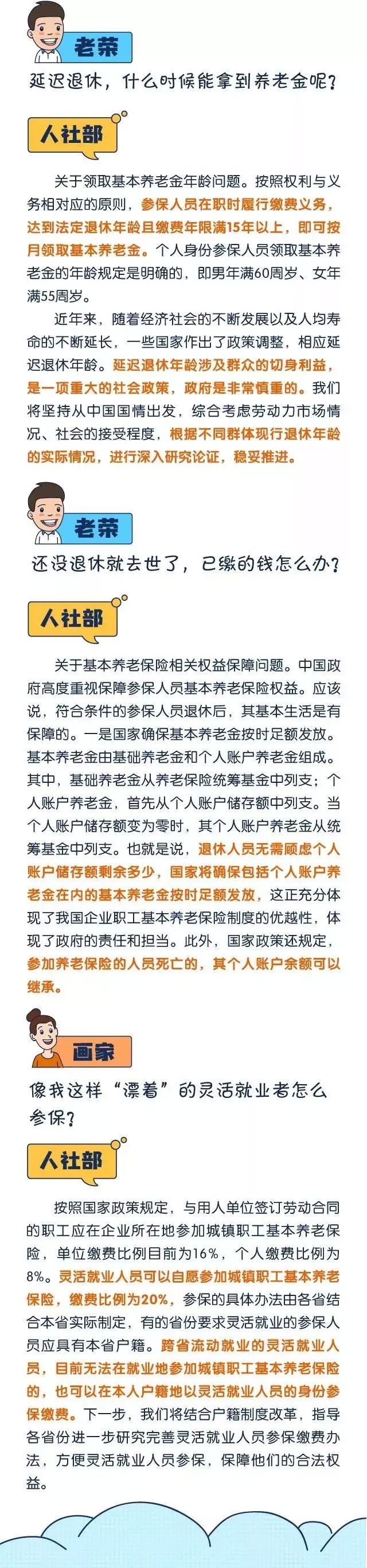 今日人社部針對大家關心的社保相關問題有了最新統一的回復,包括養老金能領多少?異地參保怎么辦?靈活就業者怎么參保等等問題,通過下面一張圖仁本帶你好好了解!