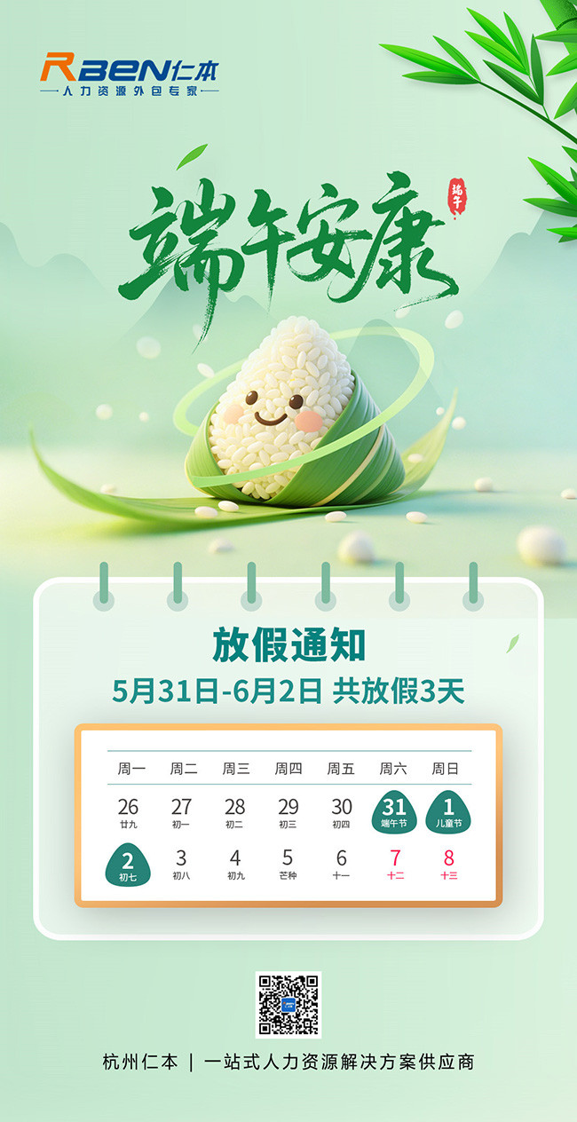 杭州仁本2025年端午節放假通知