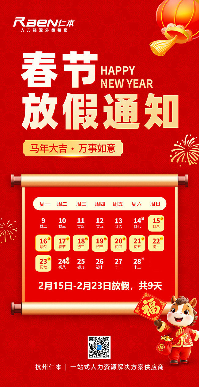 杭州仁本2026年春節放假通知: