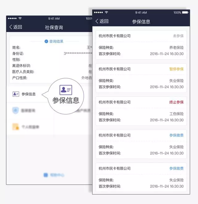 “參保信息”記錄了你在最近一家公司第一次繳納社保的時(shí)間和險(xiǎn)種類型,快看看你的五險(xiǎn)交齊了嗎? 繳費(fèi)記錄