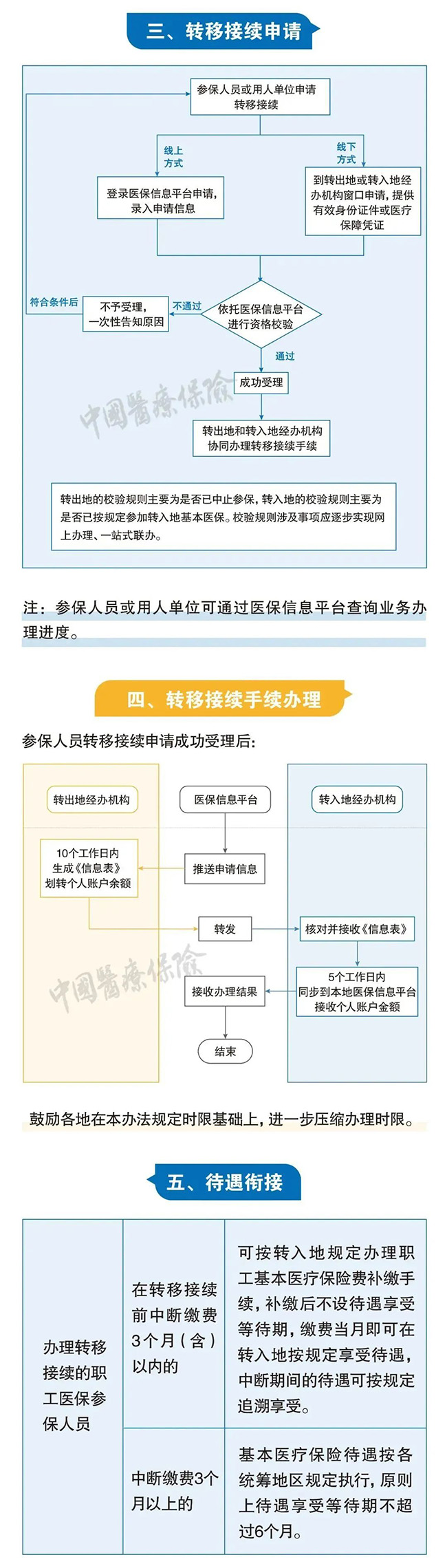 04 換城市、換工作,社保轉(zhuǎn)移這樣辦! 一、社保轉(zhuǎn)移合并辦理辦法 在轉(zhuǎn)出地已停保,在轉(zhuǎn)入地已參保,并且有繳費(fèi)記錄,男性<50歲,女性<40歲,才能跨省轉(zhuǎn)移。 二、醫(yī)保轉(zhuǎn)移 醫(yī)保的聯(lián)網(wǎng)通辦程度不如社保,為進(jìn)一步加強(qiáng)基本醫(yī)保關(guān)系轉(zhuǎn)移接續(xù)管理,促進(jìn)參保人員基本醫(yī)保待遇連續(xù)享受,2021年12月1日起,《基本醫(yī)療保險(xiǎn)關(guān)系轉(zhuǎn)移接續(xù)暫行辦法》正式實(shí)施。 在這個(gè)文件中,對(duì)醫(yī)保關(guān)系的轉(zhuǎn)移接續(xù),在全國層面上統(tǒng)一了經(jīng)辦流程,規(guī)范了待遇銜接。看完這張圖,大家就能搞懂醫(yī)保的轉(zhuǎn)移接續(xù)啦~
