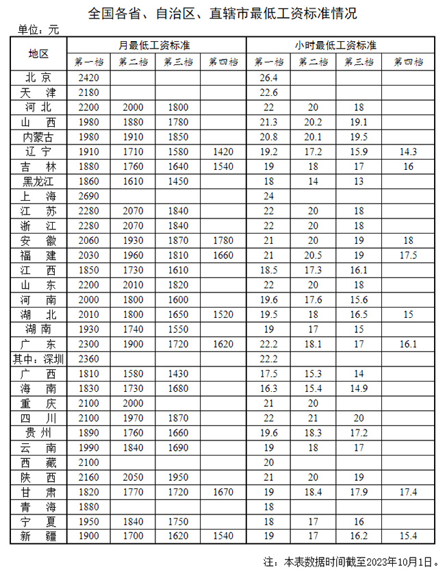 2023年馬上就要結(jié)束了,企業(yè)又到一年一度的調(diào)薪時間,那你的工資有沒有漲呢? 近期,多地人社官方發(fā)布2023年企業(yè)工資指導(dǎo)線以及最新工資標(biāo)準(zhǔn),官方喊話到手工資要漲了! 人社官方發(fā)布最低工資標(biāo)準(zhǔn) 2023年11月起,強制執(zhí)行 看完上述的文章,肯定有小伙伴吐槽:既然企業(yè)工資指導(dǎo)線只作為參考數(shù)據(jù),不是強制執(zhí)行,那也沒什么意義? 那你可要注意了! 近期,人社部也發(fā)布了最低工資標(biāo)準(zhǔn),是強制執(zhí)行的,月薪低于這個數(shù),就是違法!