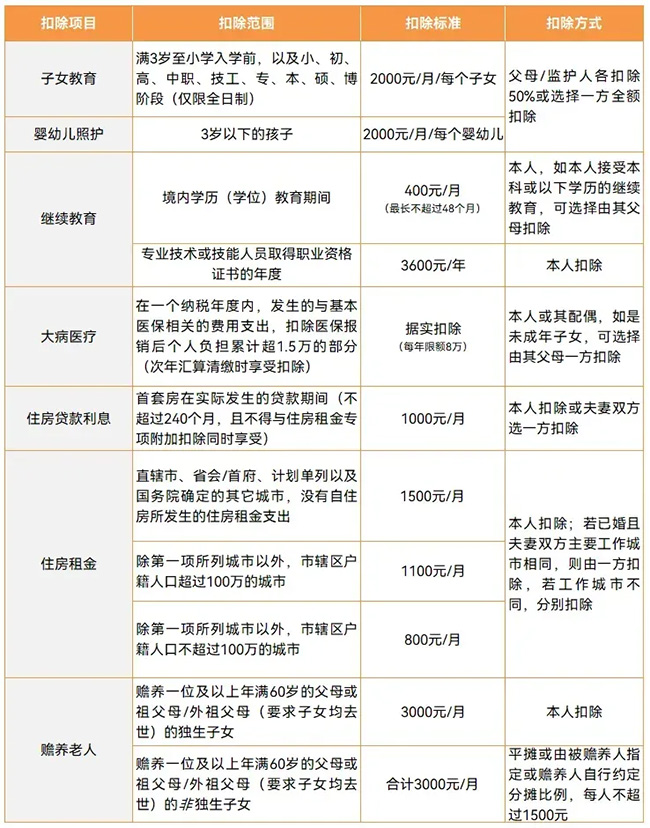 這樣操作,個稅多退幾千塊! 在進行個稅匯算清繳時,一樣的收入,為什么有的人卻可以退一大筆錢呢?可能是多做了這一步。 1、專項附加扣除,家庭減稅神器 個人所得稅專項附加扣除覆蓋子女教育、房貸利息、贍養(yǎng)老人等七大類,合理填報可大幅降低應(yīng)納稅所得額; 詳細(xì)的扣除范圍等,都匯總在表格上了,更方便大家直接了解及保存,這里就不過多介紹了;