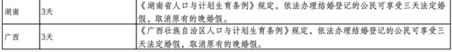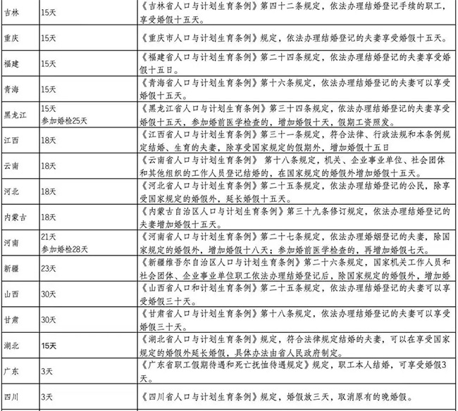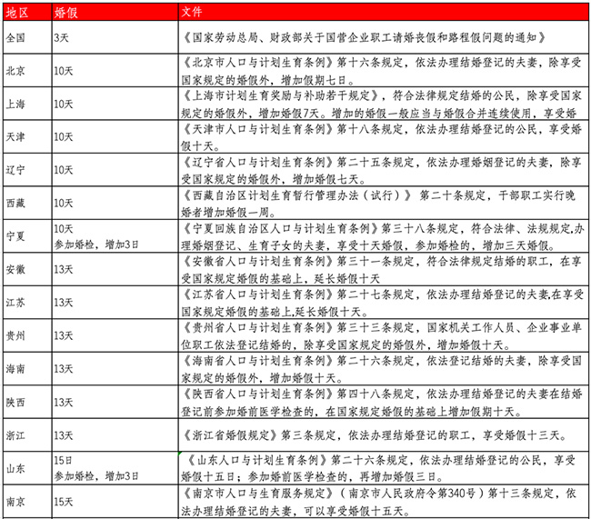 現目國家法定規定的婚假是3天,但是各地在不同的基礎上適當延長了婚假天數,其中黑龍江、河南、陜西、寧夏等地若主動參加婚檢,可以獲得額外的婚假“獎勵”。